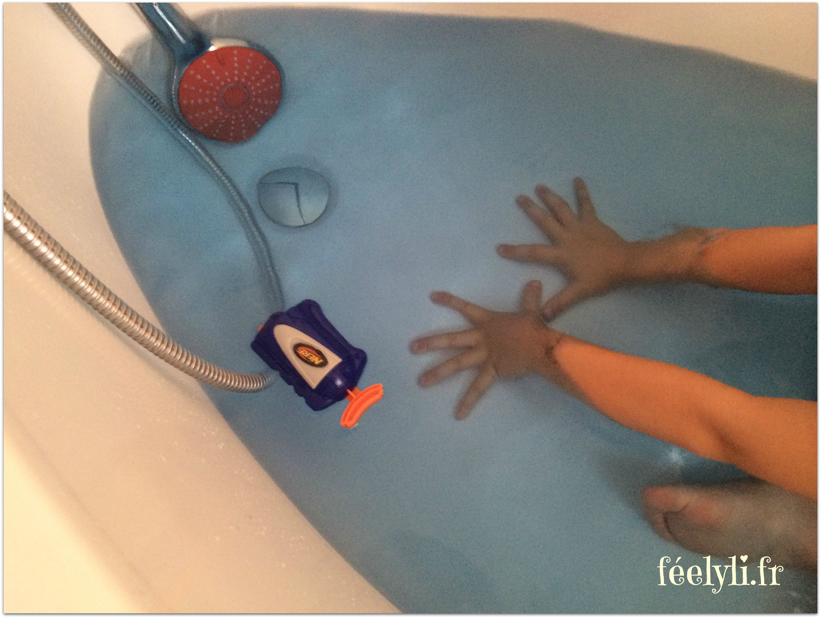 Certains jours, les enfants se battent pour prendre leur bain en premier (oui, pour éviter que la salle de bain ne ressemble à un parc aquatique, les bains se font maintenant séparément). Puis d’autres jours, il faut ruser pour motiver les troupes, je ne suis pas une accro du bain, les douches sont très pratiques aussi les soirs où nous sommes pressés mais un bain de temps en temps ne fait pas de mal.