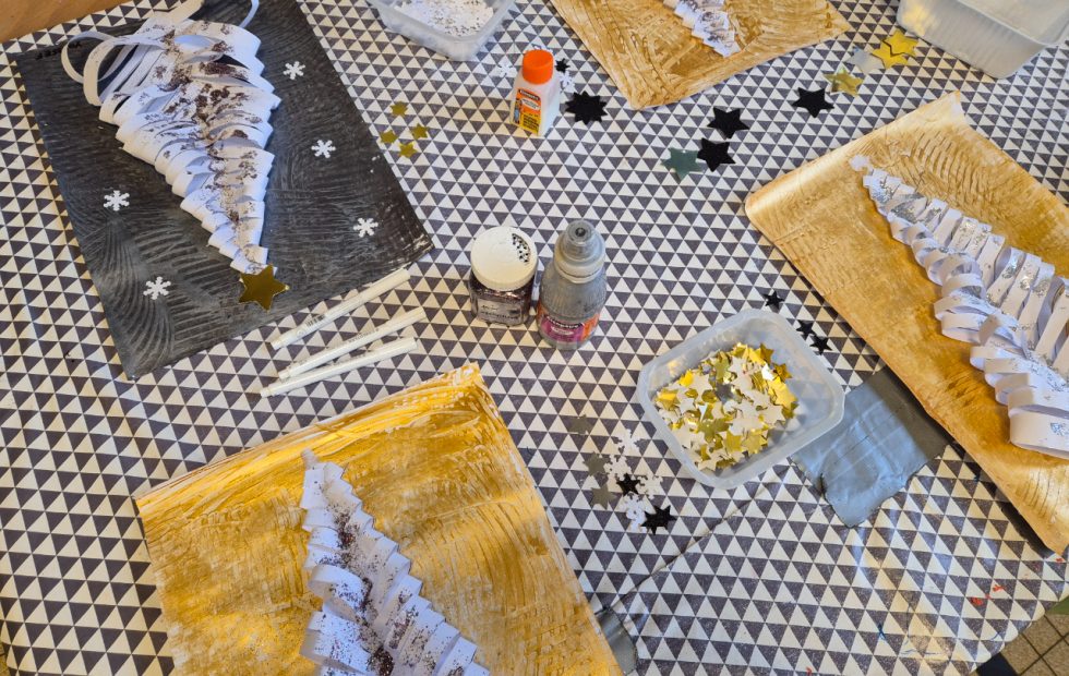 Nos sapins de Noël pailletés en maternelle [DIY]