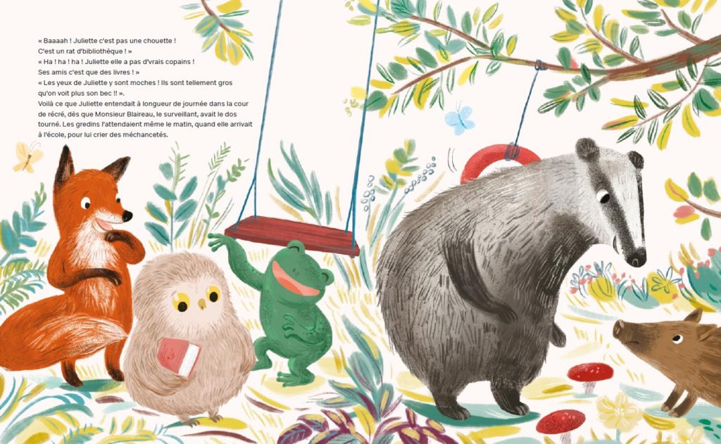 Dans une forêt tout près d’ici vivait Juliette, une petite chouette. Tout allait très bien dans la vie de Juliette, sauf à l’école. Juliette adorait son maître et elle était la première de la classe… Mais il y avait une ombre au tableau.
