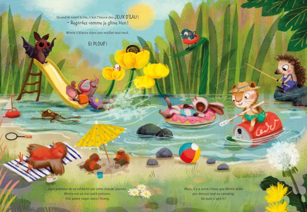 Mimie part pour la première fois au camping avec sa famille. D’abord un peu inquiète, elle se demande ce qu’elle va pouvoir y faire, et craint de s’ennuyer.