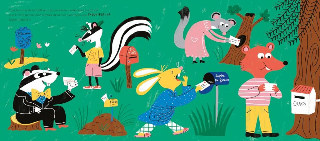 Tous les amis de la forêt ont reçu une mystérieuse lettre de Renard. Ils sont invités à… une proutiflette ! Mais qu’est-ce donc ? Un concours de pets, imagine Putois. Un festin de raclette et de tartiflette, d’après Ours. Encore mieux : une soirée déguisée, se réjouit Blaireau. Chacun y va de son interprétation. Lorqu’arrive l’heure de se rendre chez Renard, ils ne sont pas au bout de leurs surprises !