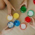 Je leur ai donc demandé de garder les bouchons plastiques qu’ils avaient à la maison et de les rapporter à l’école. Ils se sont impliqués tout de suite et très vite, nous avons eu une jolie collection de bouchons.