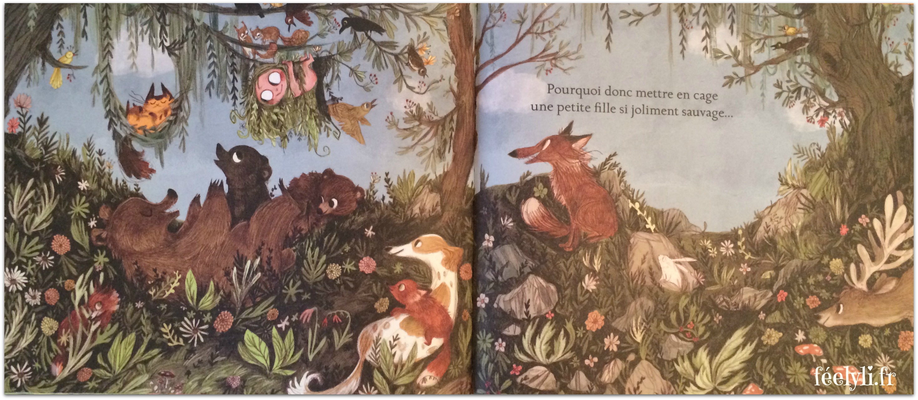 Une petite fille a grandi dans la nature, entourée d’animaux. Les oiseaux lui ont appris à parler, les ours lui ont enseigné où trouver à manger, les renards lui ont montré comment s’amuser.